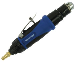 Wiertarki i wkrętaki pneumatyczne powszechnie wykorzystywane są w przemyśle stolarskim, motoryzacyjnym, technice warsztatowej, na liniach montażowych i w zakładach wytwórczych. To narzędzia do wszechstronnego zastosowania w pracach naprawczych i konserwacyjnych – są przydatne dla zawodowców i hobbystów. Cechuje je wyjątkowa jakość wykonania – są ergonomiczne i poręczne dla użytkownika, odporne na przypadkowe uszkodzenia. Posiadają znacznie prostszą i trwalszą konstrukcję od ich elektrycznych odpowiedników. Regulowany zakres prędkości i zmiana kierunku obrotów pozwala na wykorzystanie narzędzia przy pracach wymagających dużej precyzji.  Pneumatyczna wiertarka prosta kompozytowa AD-734  znajdzie swoje zastosowanie w zakładach produkcyjnych lub montażowych. Zaletami tego modelu jest niska waga oraz duża prędkość obrotowa przy jednocześnie niskim zapotrzebowaniu na sprężone powietrze. Wiertarka wyposażona jest w przełącznik regulujący liczbę i kierunek obrotów. Model AD-734 pracuje z wierłami o średnicy do 10mm. Uchwyt na wiertła dokręcany kluczykiem. DANE TECHNICZNE: Model: AD-734 Obroty na minutę (r.p.m.): 2500 Max. średnica wiertła/bitu (mm): 10 Średnie zużycie powietrza: 84 *przy 25% obciążeniu Zakres ciśnienia pracy (bar): 6,3 Waga (kg): 0,9