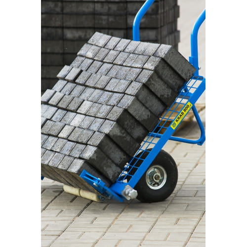 Idealnie sprawdzi się do przewozu pionowych rzędów kostki brukowej podnoszonych bezpośrednio z palety i przewożonych do miejsca jej układania oraz jako platformy do przewozu różnych materiałów na placu budowy.