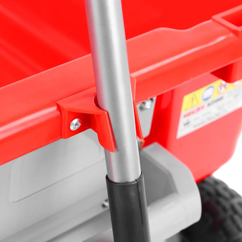 - System wywrotu skrzyni – wystarczy jedno pociągnięcie, by opróżnić zawartość. Koniec z dźwiganiem i wysypywaniem ręcznie!
