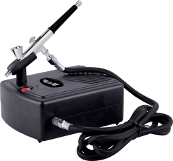 Mini kompresor AD-3001  ze względu na swoją konstrukcję, jest prosty w użyciu i „bezobsługowy” - nie wymaga uzupełniania oleju. Zestaw AD-3001 współpracuje z większością farb. Idealnie nadaje się do celów hobbistycznych, rękodzieła, zdobienia paznokci, opalania natryskowego, tatuaży tymczasowych, zdobienia ciast i tortów, grafiki samochodowej. W zestawie z mini kompresorem znajduje się wysokiej jakości aerograf oraz przewód powietrza. Model AD-3001 może zasilać każdy aerograf z gwintem podłączeniowym 1/8”Z lub innym po zastosowaniu odpowiedniego adaptera. Model AD-3001 spełnia normy CE, posiada niezbędną dokumentację, dołączono instrukcję w języku polskim oraz angielskim. DANE TECHNICZNE: Model: AD-3001 Kod: 0241.0 Napięcie zasilania (V): 230-50Hz Silnik kompresora: DC 12V / 1.6A Rodzaj kompresora: tłokowy, jednocylindrowy, bezolejowy Pobór mocy (W): 16  Wydajność (l/min): 10 Ciśnienie sprężania (bar): 2 Średnica dyszy aerografu (mm): 0,2 Pojemność zbiornika (ml): 2 Ciśnienie pracy (bar): 1-3 Gwint podłączeniowy: 1/8"Z Długość przewodu (m): 1,8 Waga zestawu (kg): 1,3  Wymiary opakowania(cm): 31 x 25,5 x 7,5