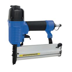 Zszywacz - gwoździarka pneumatyczna 2w1 AD-604  z gumowaną rękojeścią pozwala na precyzyjne i szybkie wykonanie wielu prac remontowych, montażowych, wykończeniowych oraz tapicerskich. Produkt, za pomocą zszywek lub gwoździ, zapewnia trwałe połączenie ze sobą materiałów różnej grubości oraz umocowanie elementów do podłoża, na przykład listew, boazerii czy paneli podłogowych. Zszywacz AD-604 posiada regulację głębokości wbijania. DANE TECHNICZNE: Model: AD-604 Funkcje: zszywacz, gwoździarka Typ zszywek: Ga18 (1,25mm x 1mm) Szerokość zszywki (mm): 5,7 Wysokość zszywki (mm): 16-40 Wysokość gwoździa (mm): 15-50 Pojemność zszywek/gwoździ (szt): 100 Średnie zużycie powietrza (l/min): 53 *przy 25% obciążeniu Maksymalne ciśnienie pracy (bar): 6,3 Waga (kg): 1,5