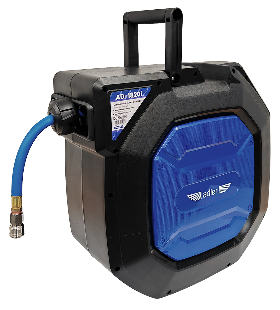 Profesjonalne zwijadło pneumatyczne HYBRID 18,8x12,5-20m ADLER INDUSTRIAL AD-1820i to produkt najwyższej jakości, wykonany z dużą precyzją, z zastosowaniem najlepszych materiałów.Zwijadło jest wyposażone w bardzo długie przewody (model AD-1820i - 20m, model AD-1827i - 27m), co umożliwia pracę w najbardziej oddalonym miejscu.Przewody hybrydowe nowej generacji, do produkcji których zastosowano specjalną mieszankę pcv i gumy, posiadają wysoką odporność ciśnieniową, są niezwykle elastyczne i wygodne w użytkowaniu, także w temperaturach ujemnych.Doskonałej jakości uszczelnienie, wysokiej jakości sprężyna i dodatkowy mechanizm regulacji sprężyny, gwarantują długotrwałą pracę w ciężkich warunkach przemysłowych. Mechanizm zastosowany w zwijadłach, model AD-1820i oraz AD-1827i, pozwala na zatrzymanie przewodu w każdym momencie. Zwijanie przewodu przebiega płynnie, w bardziej kontrolowany sposób. Dane techniczne: Materiał przewodu: Hybrydowy ( PCV Guma) Średnica zewnętrzna przewodu: 18,8 mm Średnica wewnętrzna przewodu: 12,5 mm Grubość ścianki: 3,15 mm Długość przewodu: 20 m Ciśnienie pracy: 10 bar Ciśnienie maksymalne: 17 bar Temperatura pracy: -20 st. C ~ 50 st. C Obudowa: obudowa z tworzywa Przeznaczenie: sprężone powietrze Wymiary: 58,5 x 26,5 x 50 cm Waga netto: 15 kg Waga brutto: 16 kg